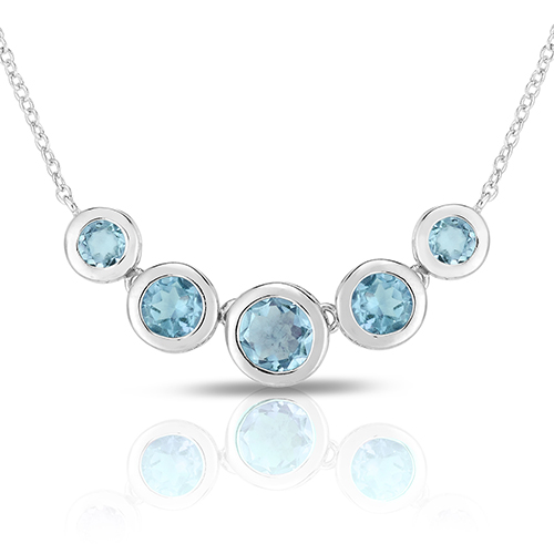 A bold and luxurious design rounded out by shimmering blue topaz. Perfect for everyday wear or a special night out. Genuine 6mm 5mm and 4mm blue topaz set in polished sterling silver. Gems hang from a 16" + 2" cable chain. Secure spring ring cable clasp. Sterling silver features an e-coat to help prevent tarnish.